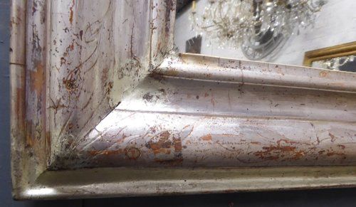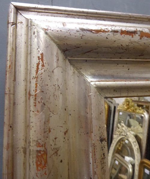 Ref 7550 - Antique French Mirror - Small silver on red Louis Philippe antique mirror with flower and leaf etching to frame. Original lightly patinated glass. Landscape/portrait. Original cardboard back. Circa 1880.