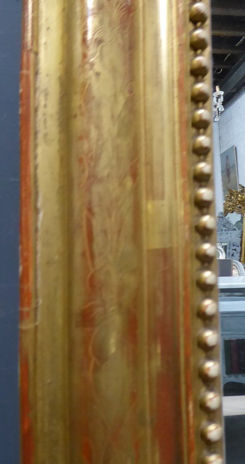 Ref 7551 - Antique French Mirror - Large gilt on red Louis Philippe antique mirror with flower and leaf etching to frame. Some non-structural shrinkage cracks to top corners of frame. Original glass. Original back. Circa 1880.