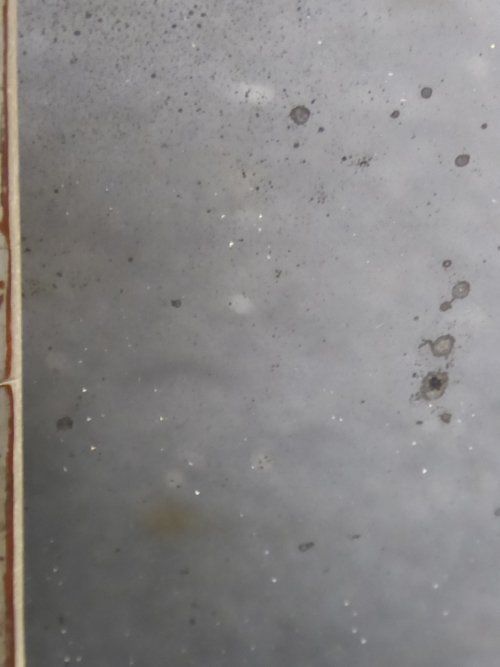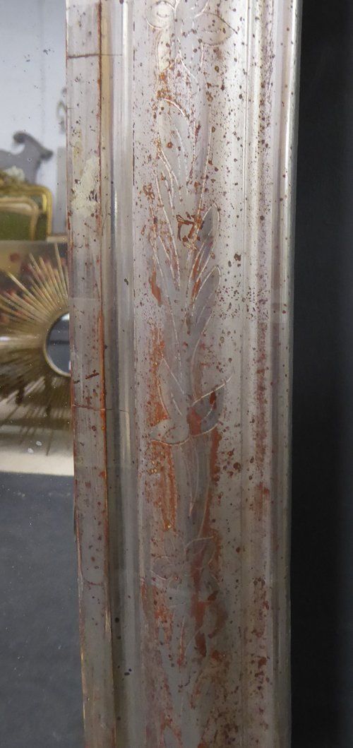 Ref 7552 - Antique French Mirror - Large period silver on red Louis Philippe antique mirror with flower and leaf etched bands to frame. Original patinated mercury glass. Original pine board back. Circa 1840.
