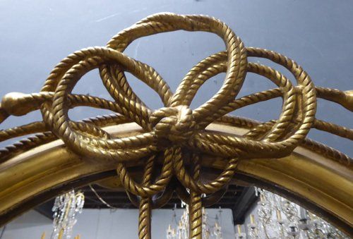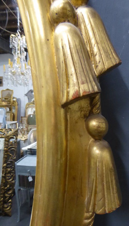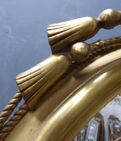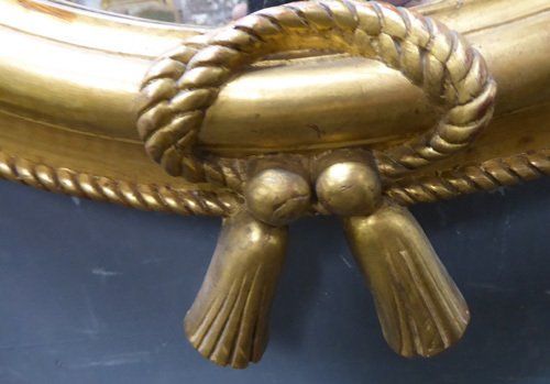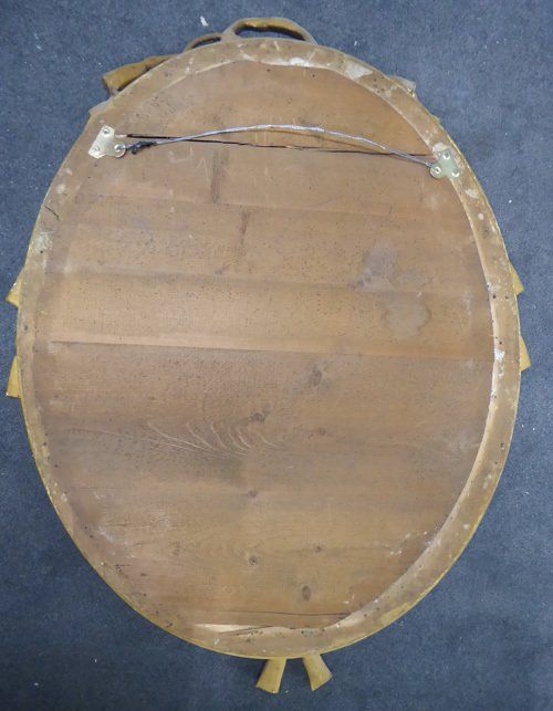 Ref 7571 - Antique French Mirror - Large gilt on red rope crested oval antique mirror. Original glass with some small surface scratches. Original pine board back. Circa 1880.