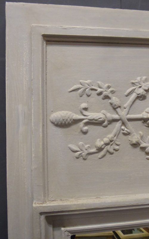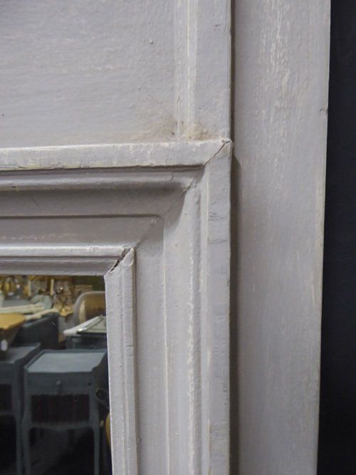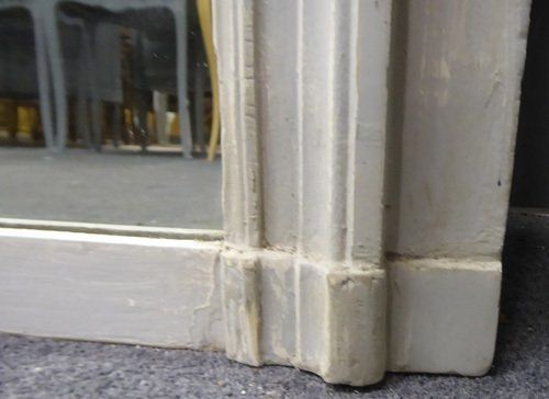 Ref 7585 - Antique French Mirror - Large worn grey over painted Louis XVI style French antique trumeau mirror. Original glass. New back. Circa 1880.