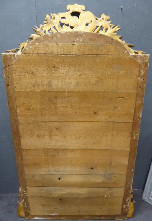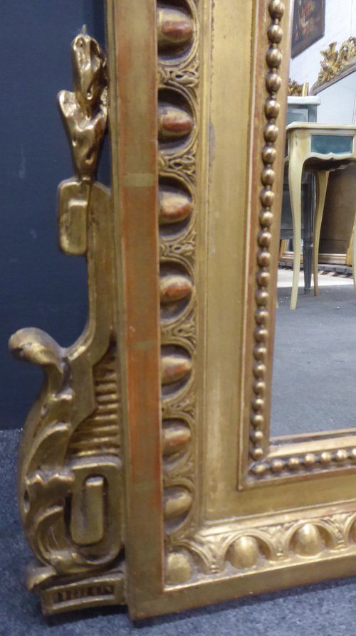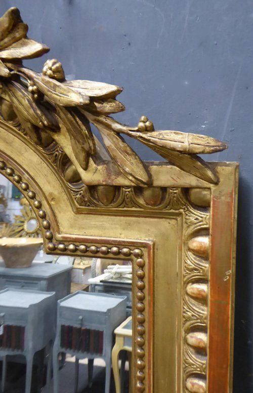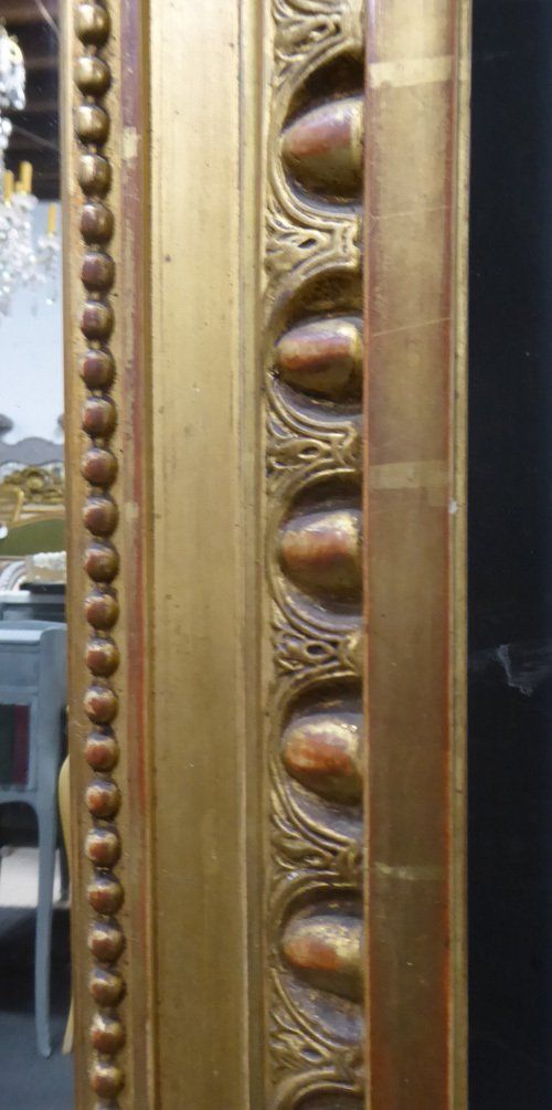 Ref 7590 - Antique French Mirror - Gilt on red Napoleon III bird crested antique mirror. Original glass with some faint patination to back of plate. Original pine board back. Circa 1870.