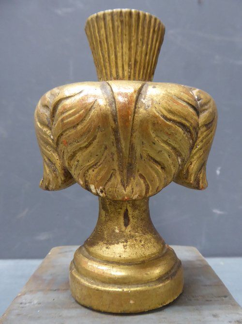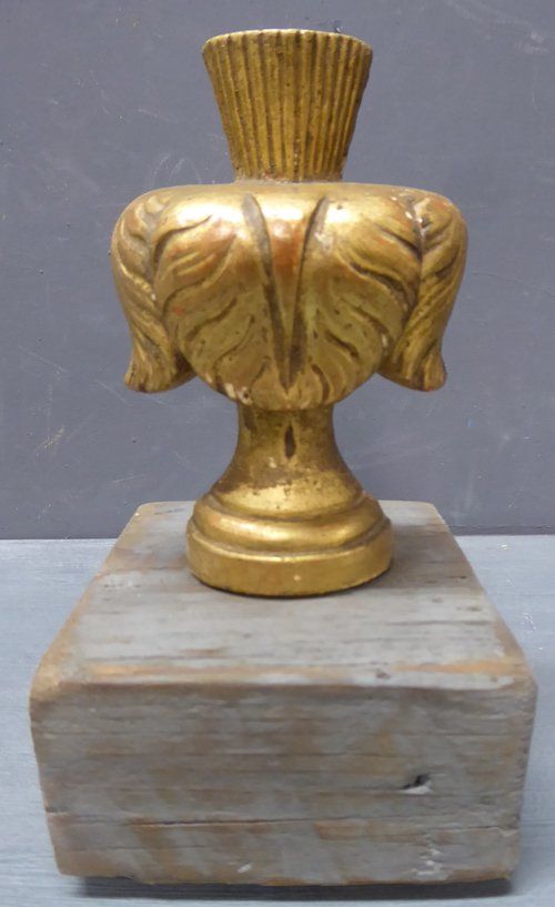 Ref 7598 - Pair of gilt ornaments created from 19th Century French gesso decorations mounted on a distressed painted pine base.