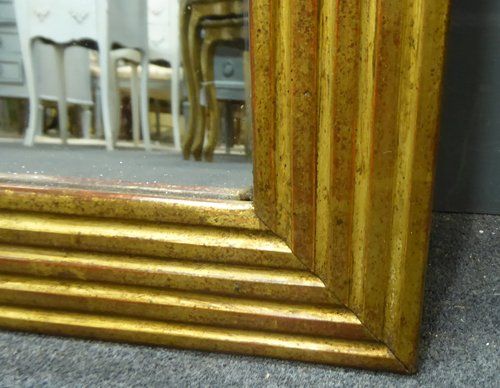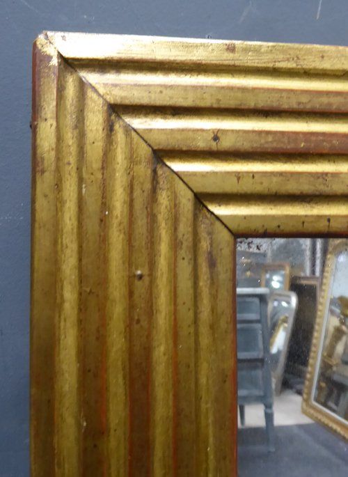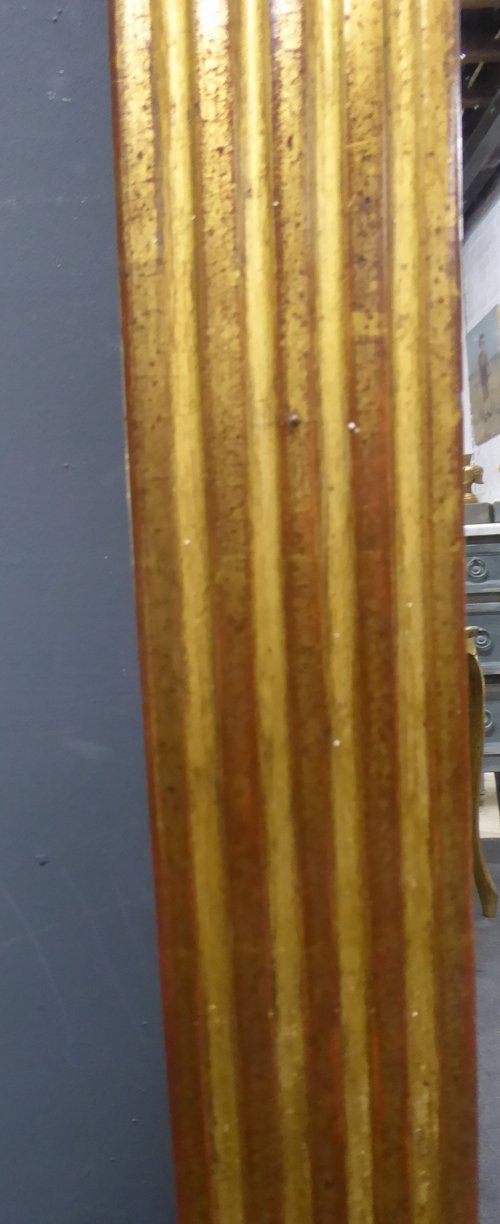 Ref 7601 - Antique French Mirror - Gilt on red period reeded decorated antique mirror. Landscape/portrait. Original mercury glass with two patches of surface scratches. Original panelled back. Circa 1830.