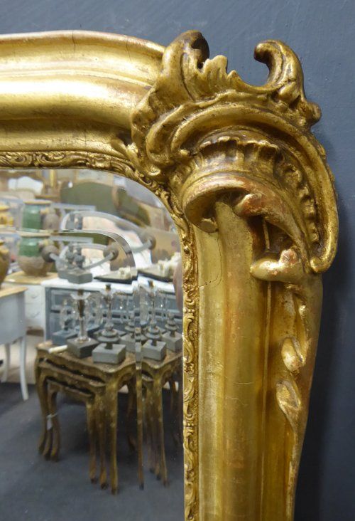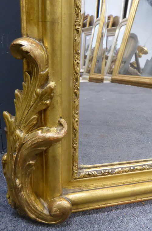 Ref 7604 - Antique French Mirror - Gilt on red Louis XV style camel crested antique mirror. Original bevelled glass with some faint patinated areas. Original pine board back. Circa 1890.