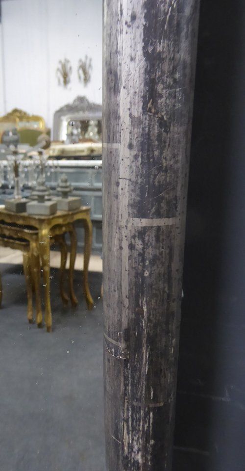 Ref 7605 - Antique French Mirror - Large antique French bistro mirror finished in original worn silver on black. Landscape/portrait. Original glass with some small patinated areas. Original thin pine board back. Circa 1880.