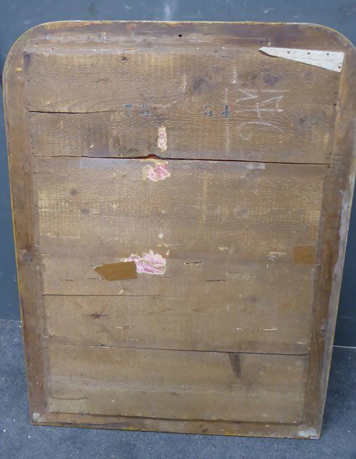 Ref 7617 - Antique French Mirror - Gilt on red Louis Philippe antique mirror with leaf etching to frame. Original glass. Original pine board back. Circa 1880.