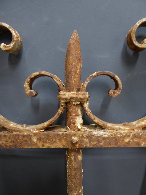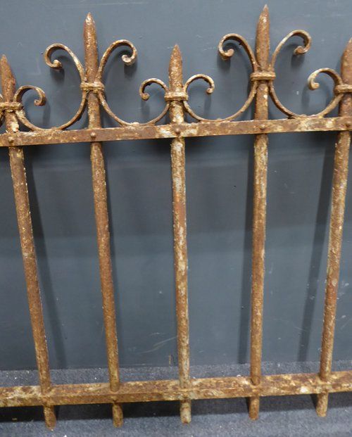 Ref 7629C - Antique French wrought iron railings with unrestored flaking paint and oxidised metal finish. Circa 1900.