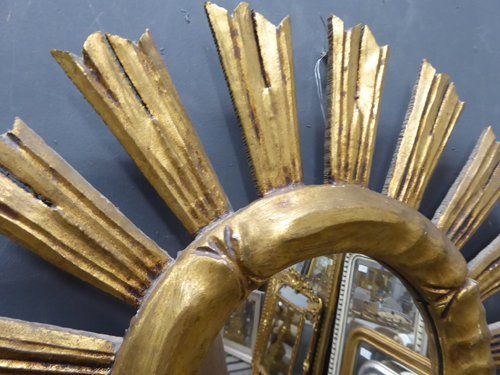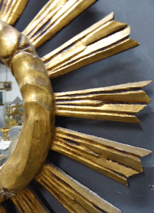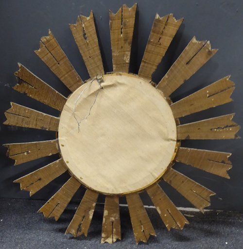 Ref 7636 - Carved giltwood sunburst mirror with original glass and back. Circa 1960.