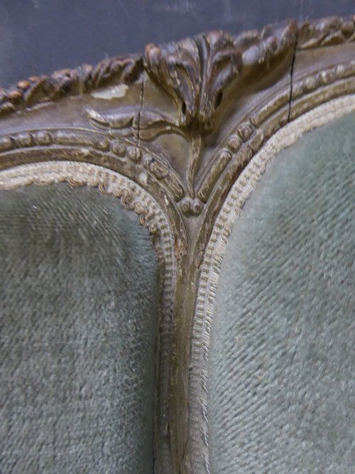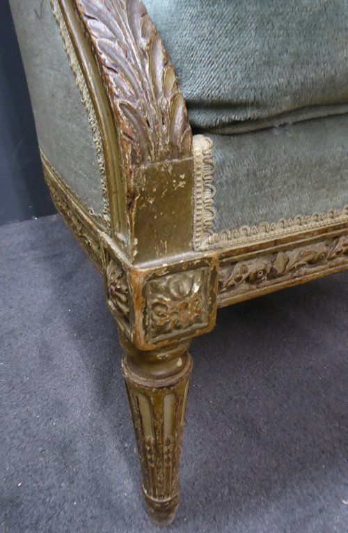 Ref 7653 - Antique French carved walnut bergere armchair. Old velvet covering. Circa 1900.