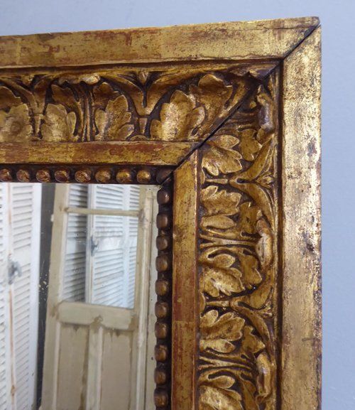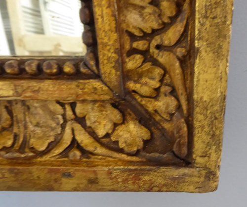 Ref 7658 - Antique French Mirror - Carved giltwood on red period landscape/portrait antique mirror. Original two tone gilt worn through to red in places. Original glass. Original pine board back. Circa 1850.