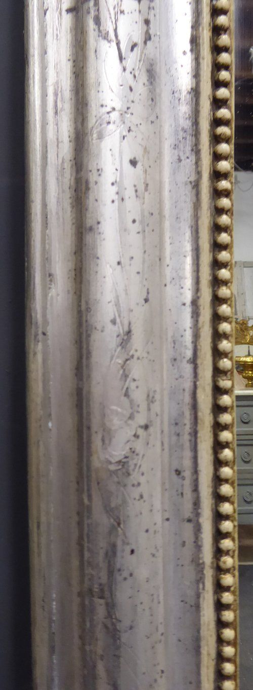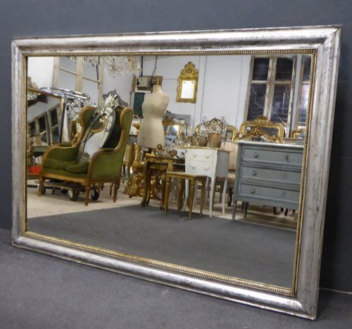 Ref 7699 - Antique French Mirror - Large silver on black Louis Philippe antique mirror with flower and leaf etching to frame. Landscape/portrait. Original glass. Original pine board back. Glass dated 1885.
