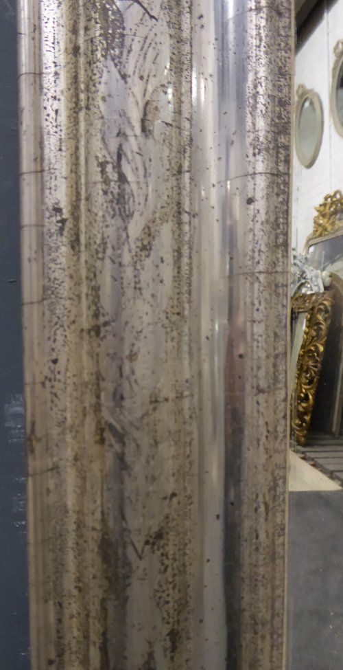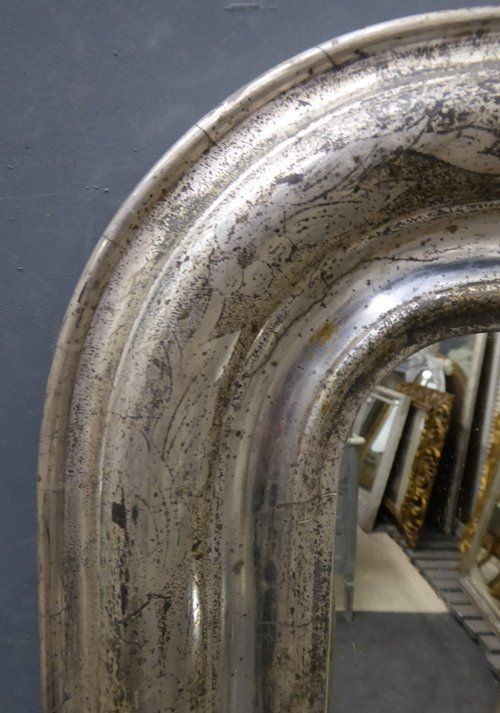 Ref 7703 - Antique French Mirror - Silver on black Louis Philippe antique mirror with flower and leaf etching to frame. Original lightly patinated glass. Original pine board back. Circa 1880.
