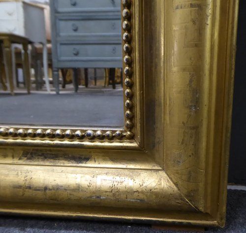 Ref 7704 - Antique French Mirror - Gilt on black Louis Philippe antique mirror with Greek Key etching to frame. Original glass. Original pine board back. Circa 1880.