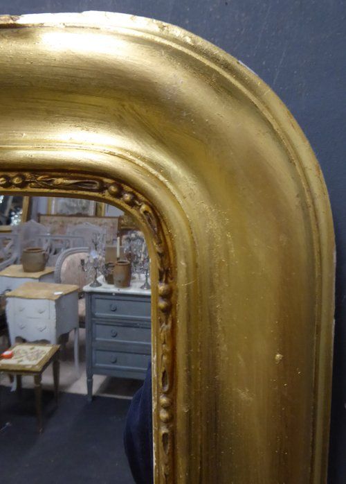 Ref 7711 - Antique French Mirror - Period gilt crested Louis Philippe antique mirror. Original mercury glass. Original pine board back. Circa 1840.