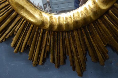 Ref 7724 - Carved giltwood sunburst mirror with original glass. Circa 1950.