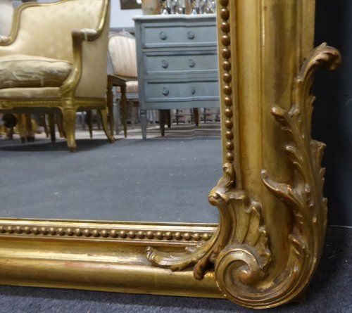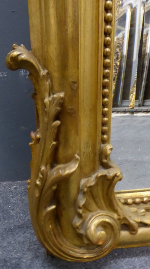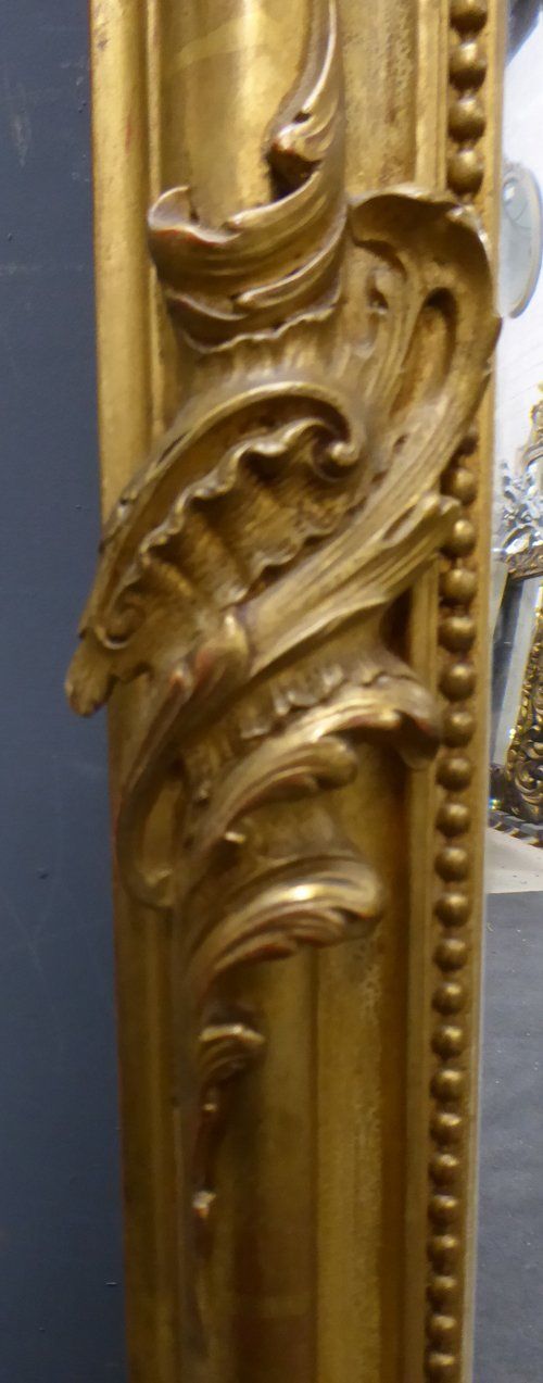 Ref 7748 - Antique French Mirror - Gilt on red camel crested Louis XV style antique mirror. Original bevelled glass with some small patinated areas. Original pine board back. Circa 1890.