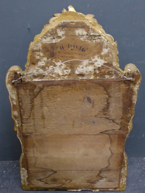 Ref 7751 - Antique French Mirror - Carved giltwood urn crested antique mirror. Finished in gilt on red with cream painted section to crest. Original bevelled glass. Original pine board back. Some old inactive and treated woodworm holes to back. Circa 1890.