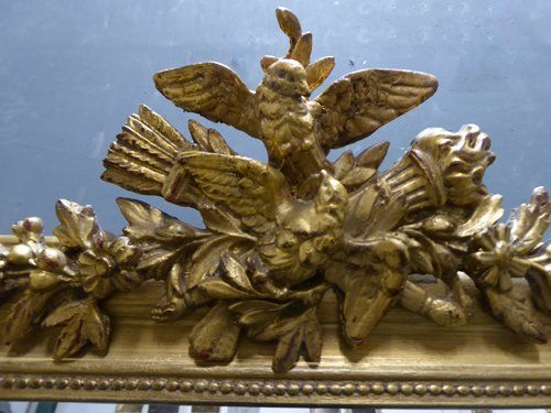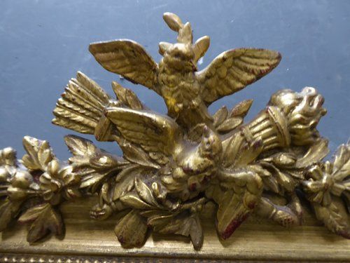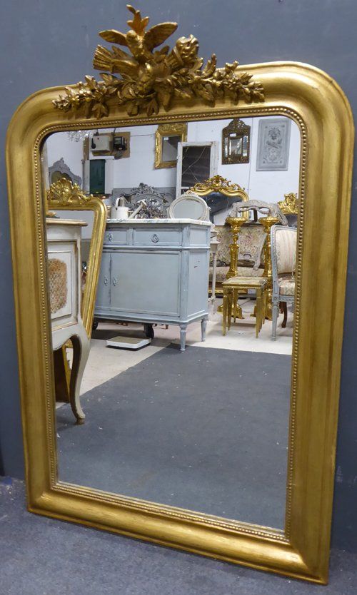 Ref 7759 - Pair of Antique French Mirrors - Pair of gilt bird crested Louis Philippe antique mirrors finished in old mellow gilt. Later glass and backs. Circa 1880.