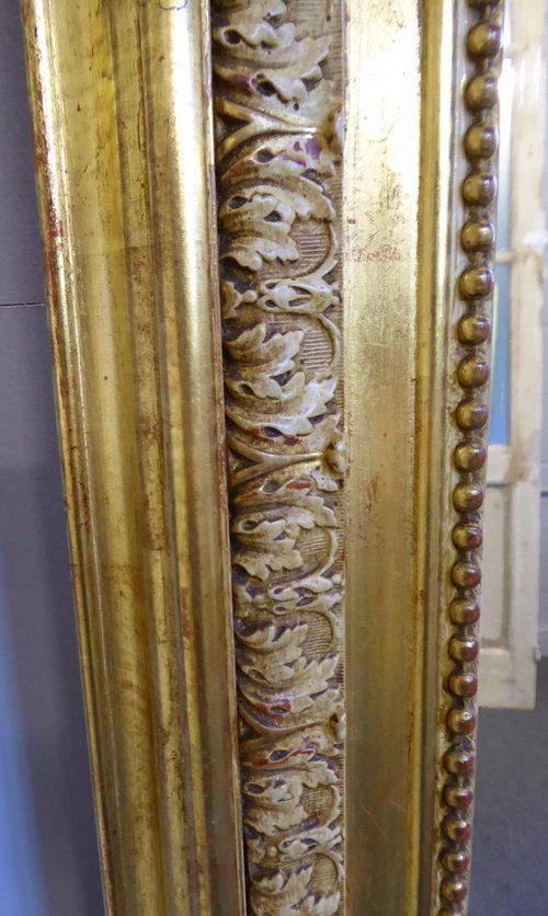 Ref 7782 - Antique French Mirror - Gilt on red Louis Philippe antique mirror with cream polished gesso decoration to frame. Original glass. Original pine board back with maker's stamp. Circa 1860.