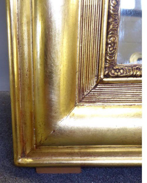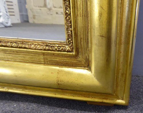 Ref 7791 - Antique French Mirror - Gilt on red Louis Philippe antique mirror with gesso decoration to inner frame. Original glass. Original pine board back. Circa 1860.