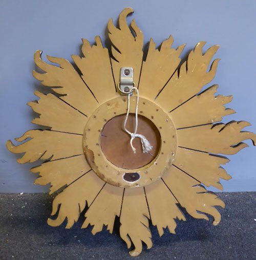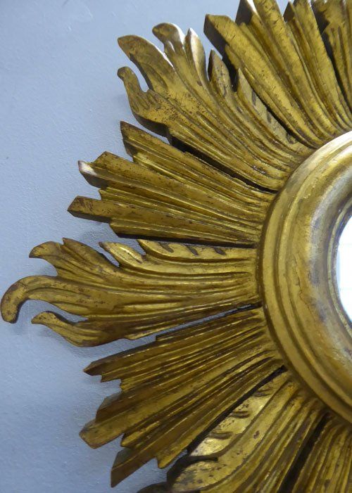 Ref 7799 - Carved giltwood sunburst mirror. Original glass. Circa 1950.