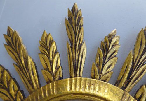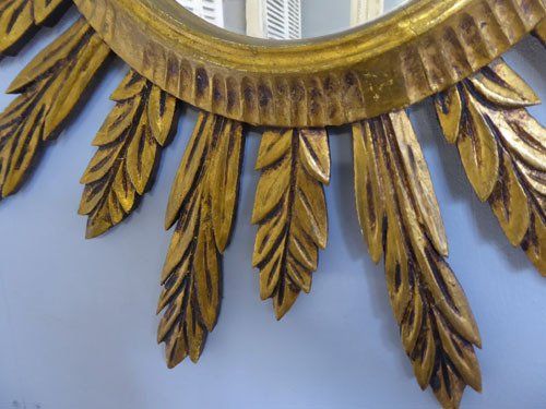Ref 7804 - Large carved giltwood sunburst mirror. Original glass. Circa 1950.