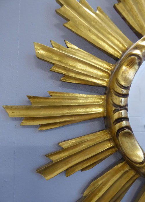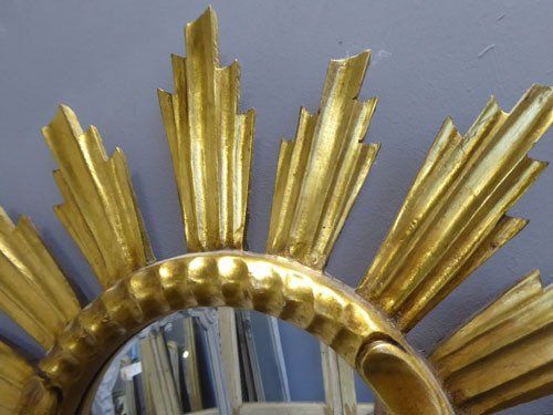 Ref 7812 - Carved giltwood sunburst mirror. Original glass. Circa 1950.