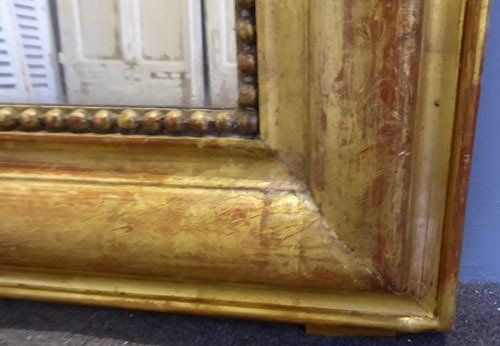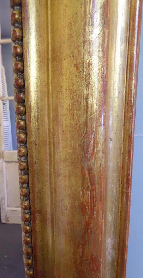 Ref 7819 - Antique French Mirror - Very large gilt on red Louis Philippe antique mirror with flower and leaf etching to frame. Original glass. Original panelled back. Circa 1840.