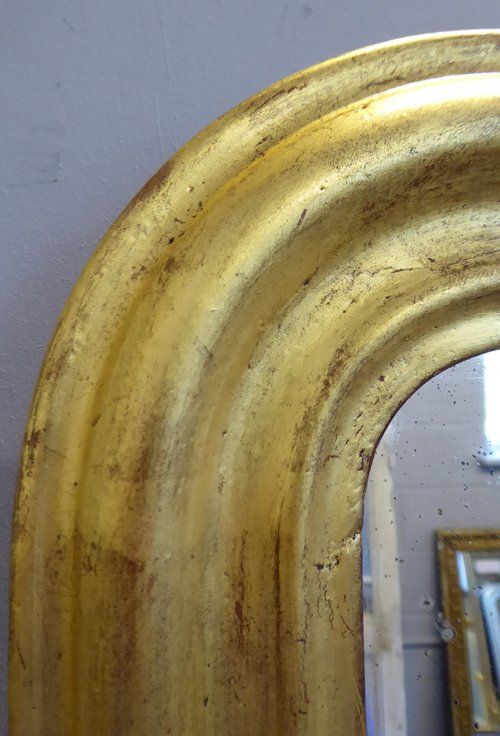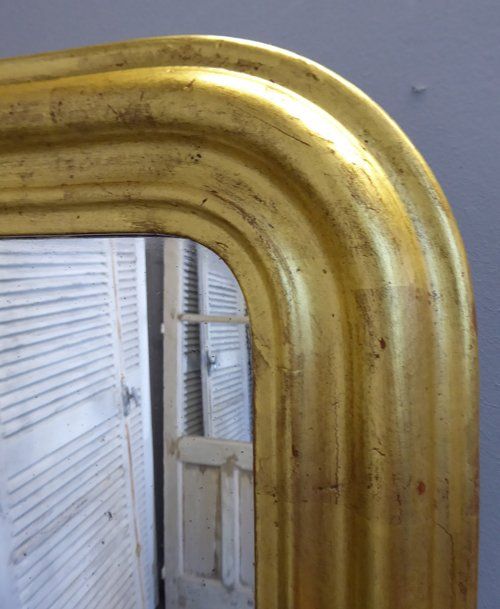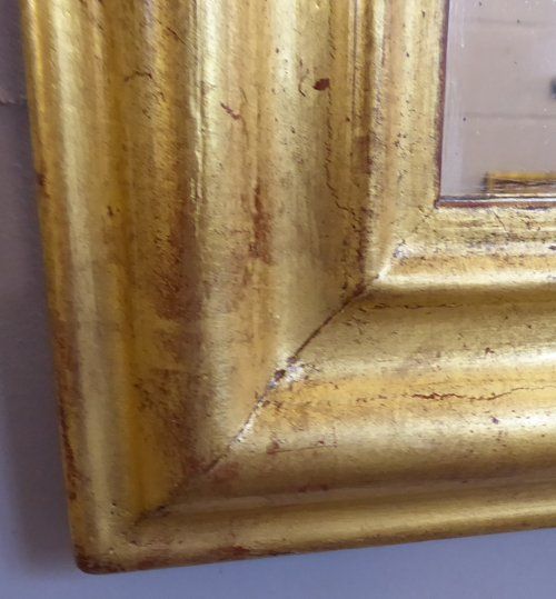Ref 7849 - Antique French Mirror - Gilt on red Louis Philippe antique mirror. Original lightly patinated glass. Original pine board back. Circa 1880.
