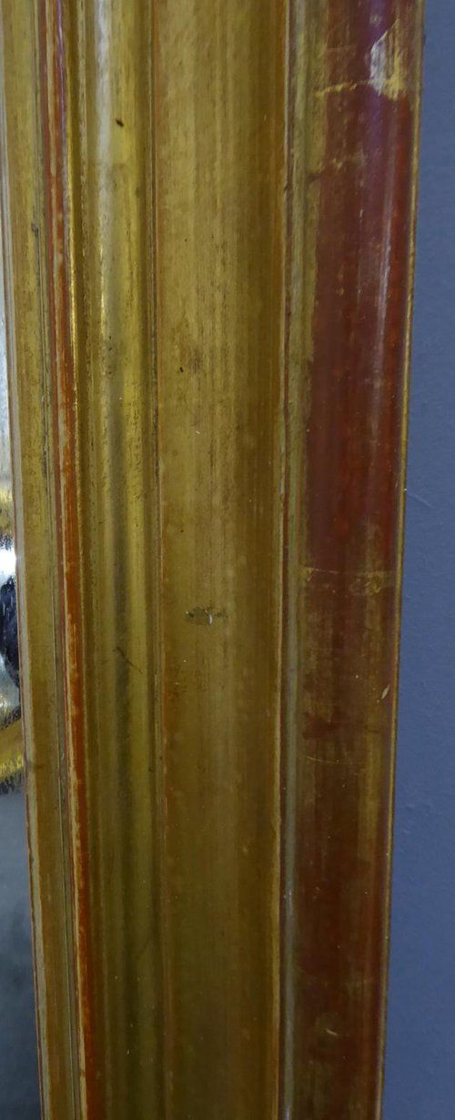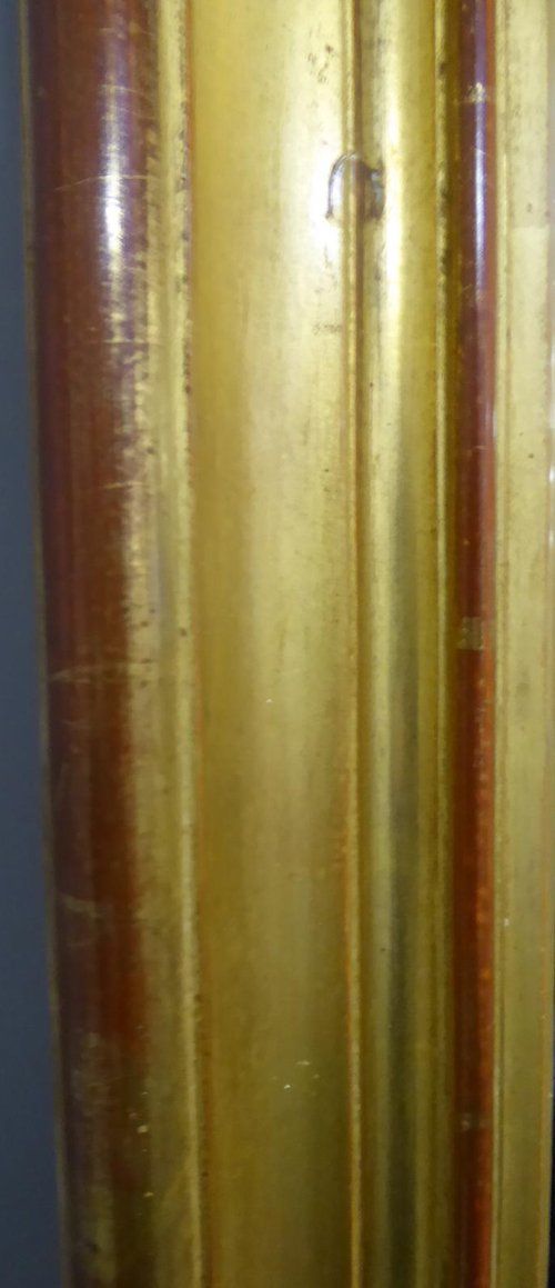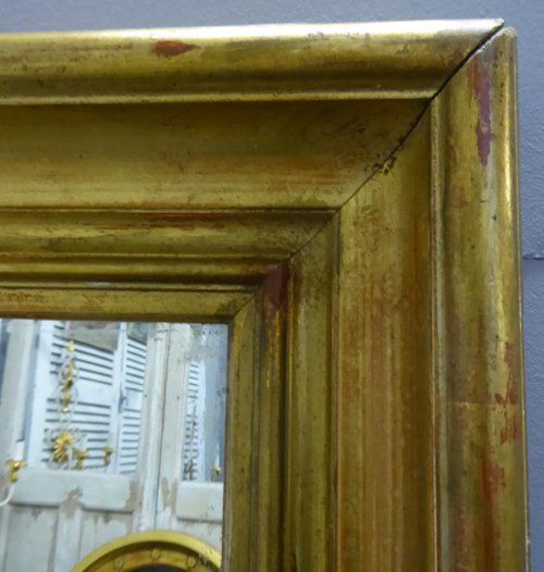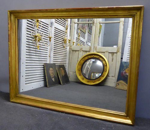 Ref 7896 - Antique French Mirror - Gilt on red Louis Philippe landscape/portrait antique mirror. Finished in two tone gilt worn through to red bole in places. Replaced glass. Old compressed card back. Circa 1880.