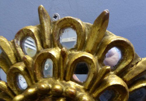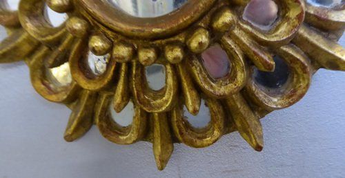 Ref 7898 - Carved giltwood sunburst mirror. Original convex glass. Circa 1950.