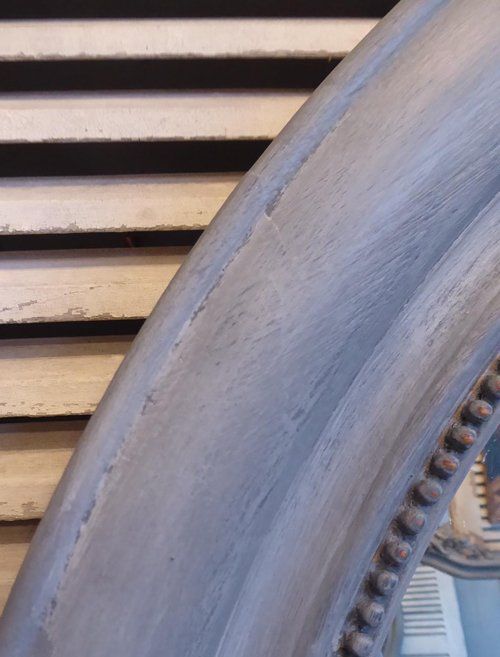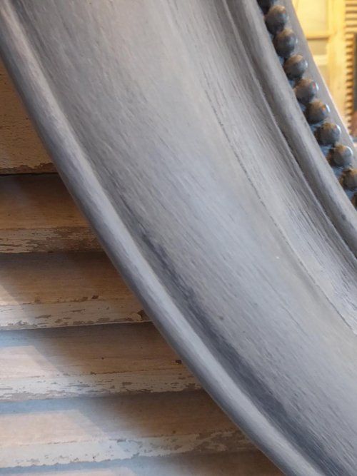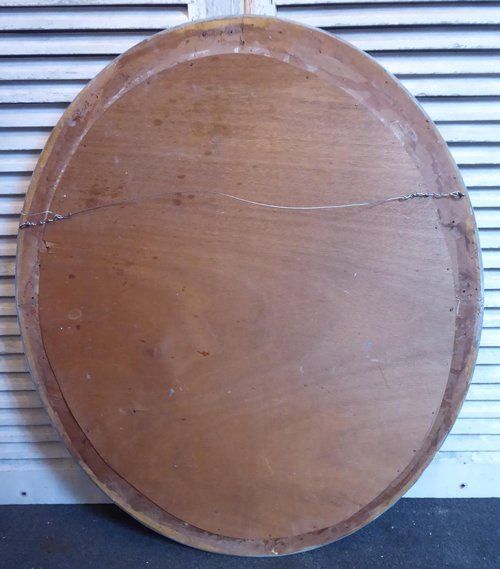 Ref 7903 - Antique French Mirror - Landscape/portrait worn grey painted Louis Philippe antique French oval mirror. Original glass. Later plywood back. Circa 1880.