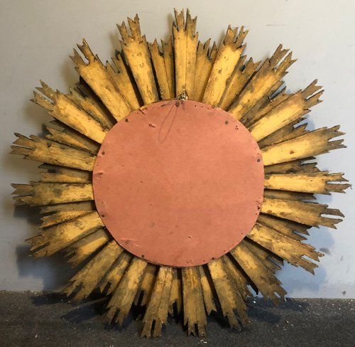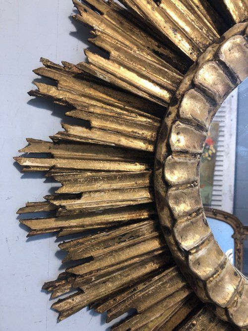 Ref 7934 - Carved giltwood double ray sunburst mirror. Original glass. Circa 1950.