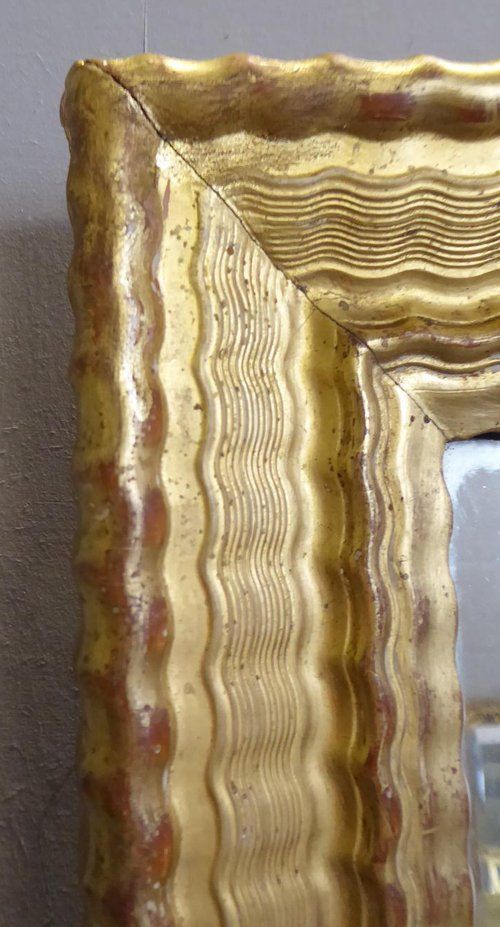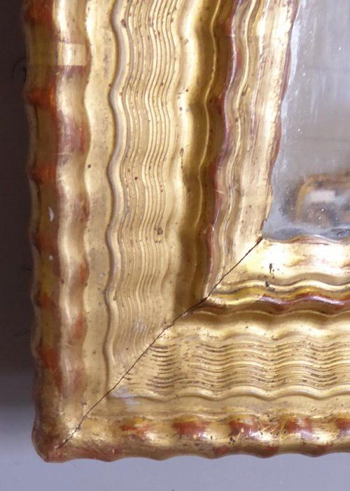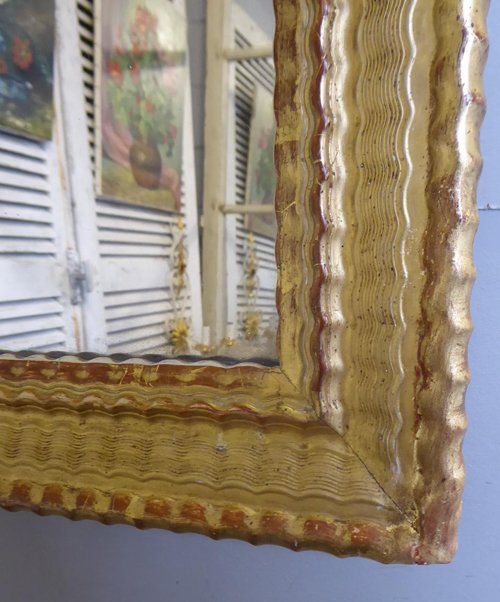 Ref 7944 - Antique French Mirror - Period gilt on red rippled decorated antique French mirror. Landscape/portrait. Original mercury glass. Original thick pine board back. Circa 1830.