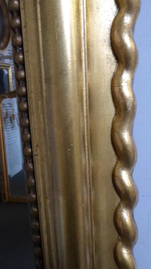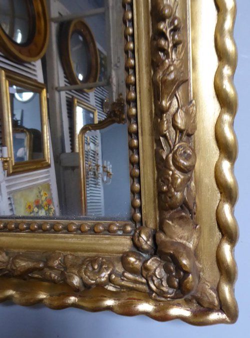 Ref 7955 - Antique French Mirror - Gilt on red period Louis Philippe antique mirror with gesso decoration to frame. Original mercury glass. Original thick pine board back. Circa 1820.