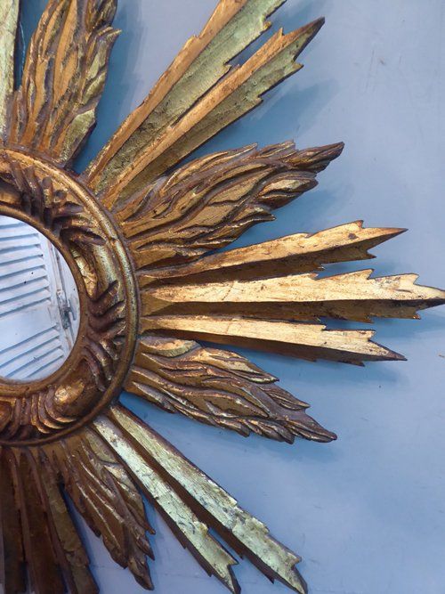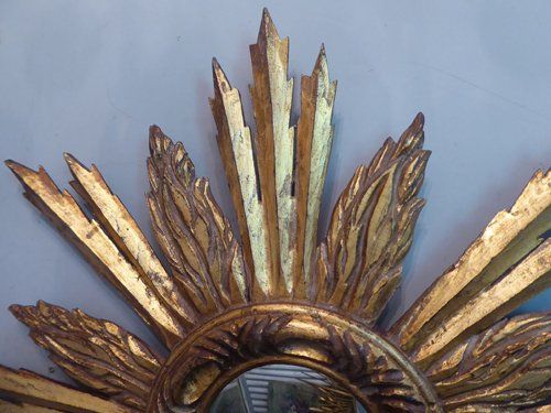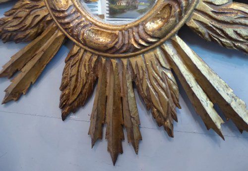 Ref 7975 - Carved giltwood sunburst mirror. Original glass. Circa 1950.