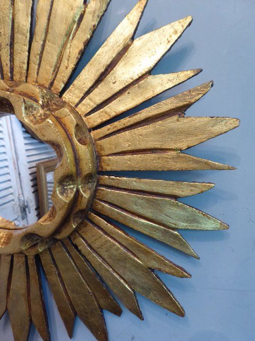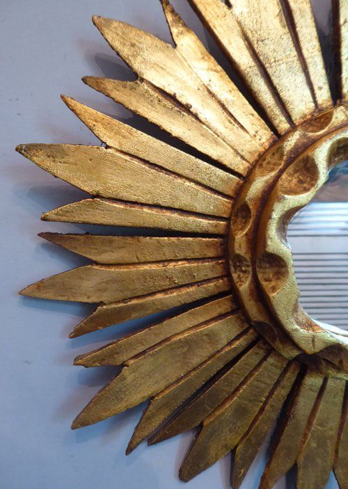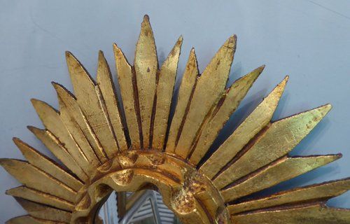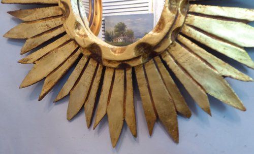 Ref 7980 - Carved giltwood sunburst mirror. Original glass. Circa 1950.