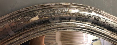 Ref 7992 - Antique French Mirror - Large silver on black camel top Louis Philippe antique mirror. Original silver leaf worn through to black bole and white gesso in places. Original bevelled glass with two small patination marks to top left of plate. Replaced plywood back. Circa 1880.