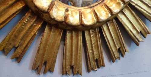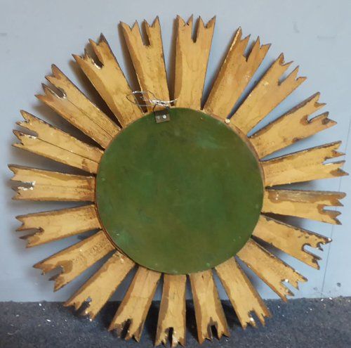 Ref 7997 - Carved giltwood sunburst mirror. Original convex glass. Circa 1950.