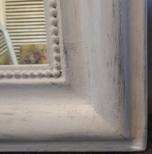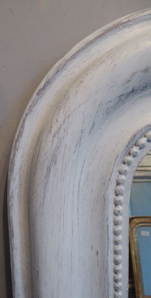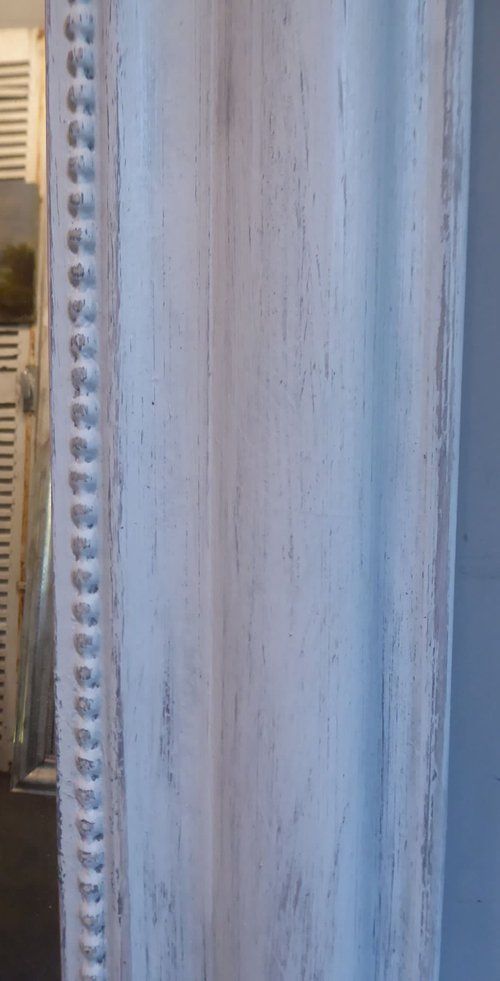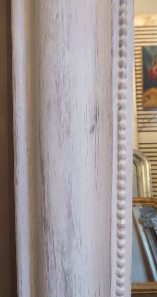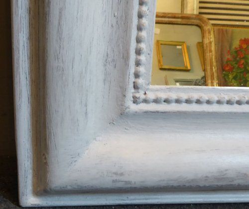 Ref 8001 - Antique French Mirror - Worn pale grey painted Louis Philippe antique mirror. Original glass. Original pine board back. Circa 1880.