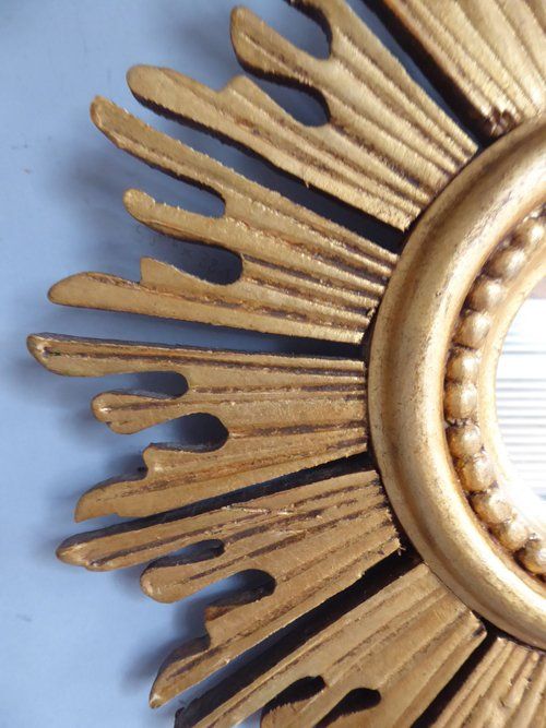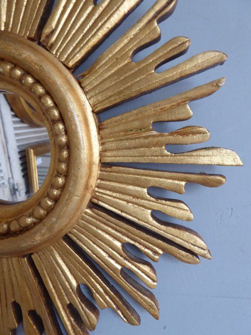 Ref 8002 - Carved giltwood sunburst mirror. Original glass. Circa 1950.