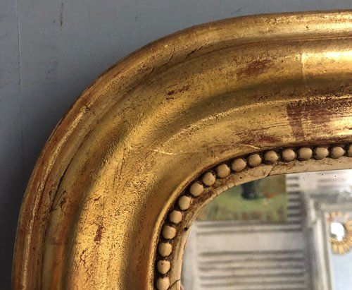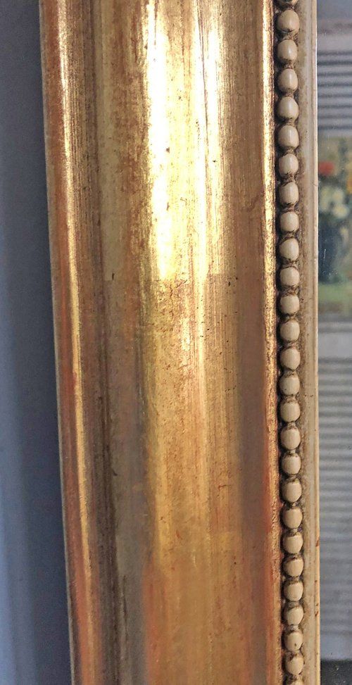 Ref 8021 - Antique French Mirror - Gilt on red Louis Philippe antique mirror with gesso bead decoration to inner frame. Original lightly patinated glass. Original pine board back. Circa 1880.