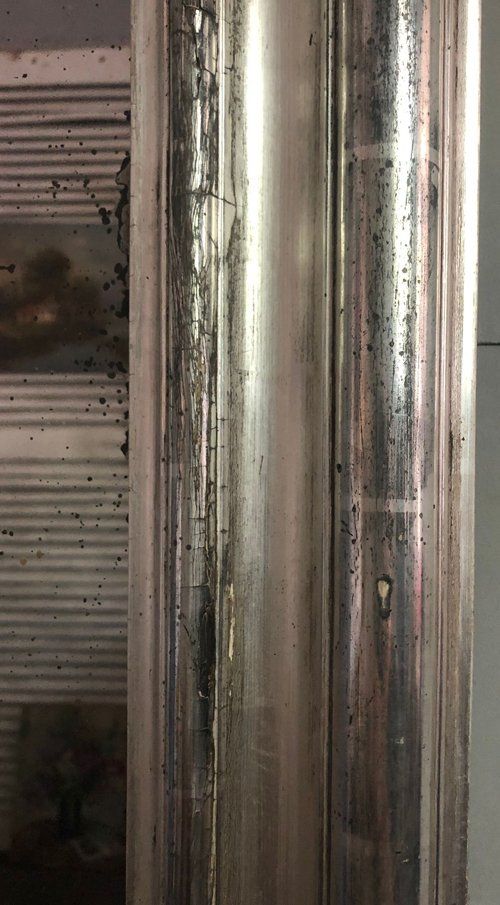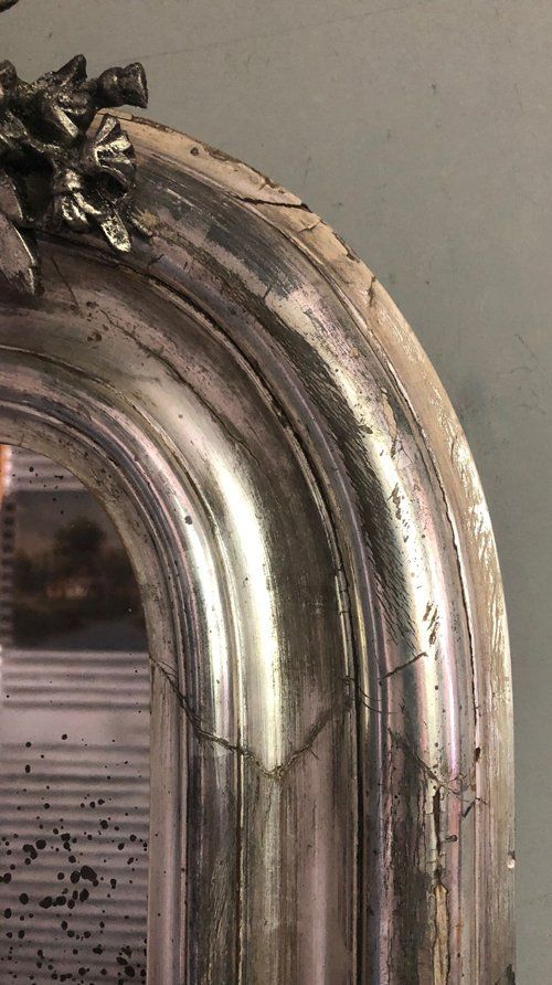 Ref 8024 - Antique French Mirror - Large bird crested silver on black Louis Philippe antique mirror. Silver worn through to black bole in places. Original patinated glass. Replaced plywood back. Circa 1880.