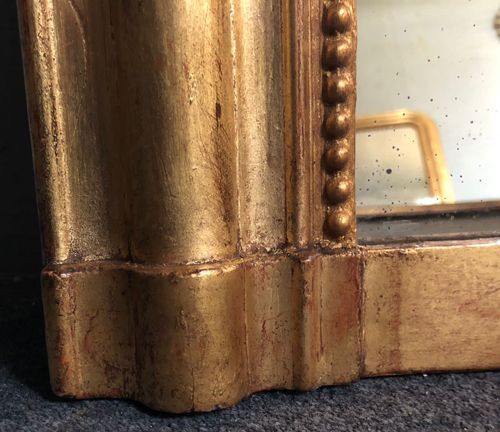 Ref 8033 - Antique French Mirror - Gilt on red Louis Philippe antique mirror with bead decoration to inner frame. Original lightly patinated glass. Later plywood back. Circa 1880.