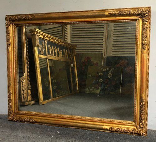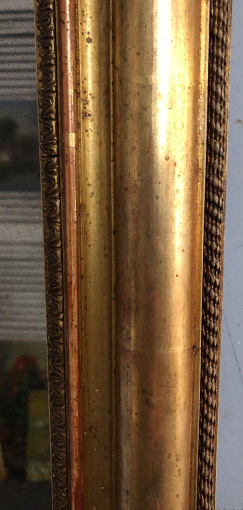 Ref 8041 - Antique French Mirror - Period Restauration gilt landscape/portrait antique mirror. Original two tone gilt worn through to red bole in places. Original thin sparkly mercury glass. Original thin pine board back. Circa 1820.