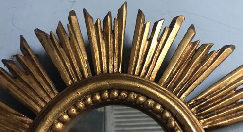 Ref 8068 - Carved giltwood sunburst mirror. Original glass. Circa 1950.