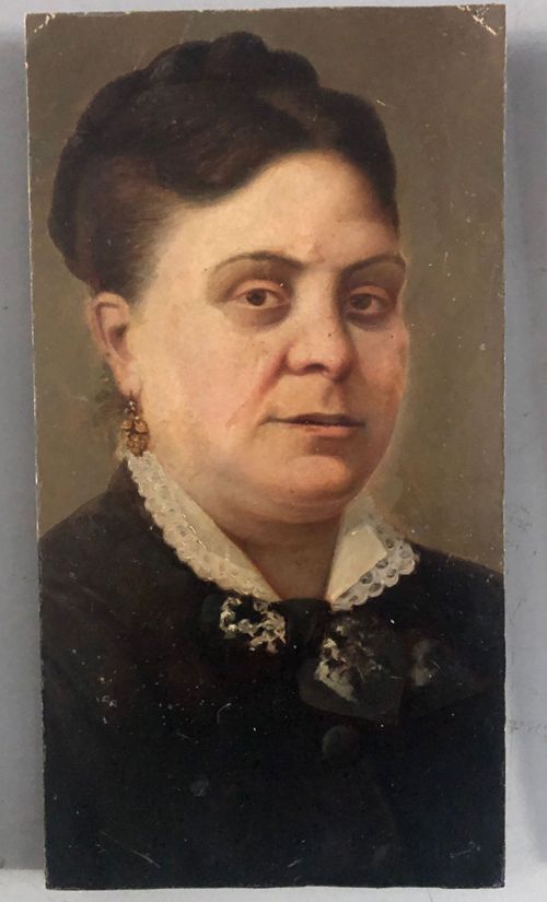 Ref 8088 - Pair of unrestored 19th century antique French oil on board portrait paintings on later wooden mounts. Circa 1880.