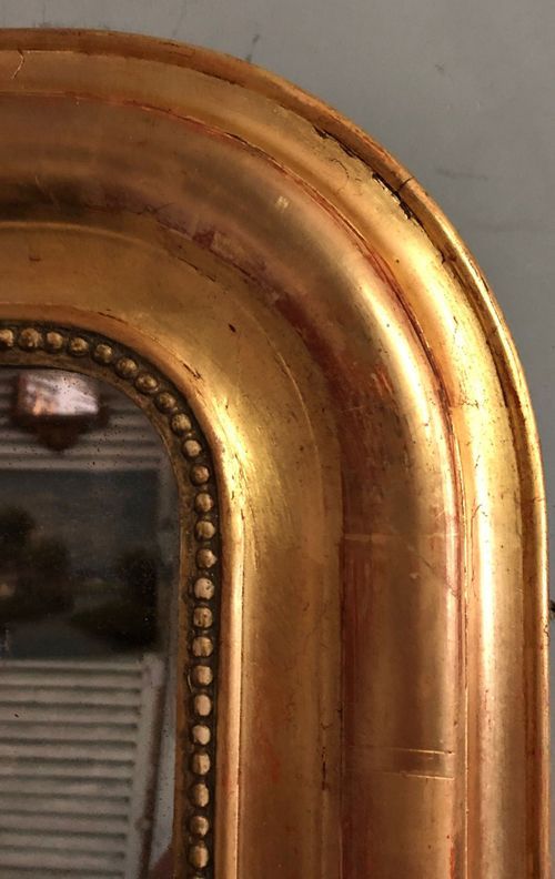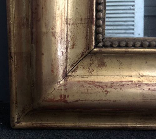 Ref 8097 - Antique French Mirror - Gilt on red Louis Philippe antique mirror with flower and leaf etching to frame. Original glass. Original pine board back. Circa 1880.