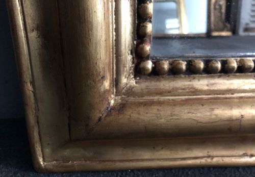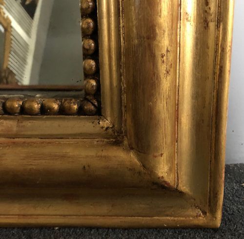Ref 8104 - Antique French Mirror - Gilt on red Louis Philippe antique mirror. Original glass. Original pine board back. Circa 1880.